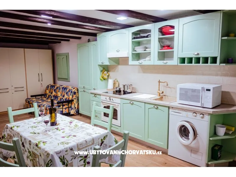 Nur ein paar Schritte vom Meer entfernt, eine kleine, bescheidene Ecke für zwei Personen, in der Sie nach einem Tag voller Spaziergänge und Schwimmen im klaren Meer Schutz und Komfort finden. Das Studio-Apartment bietet alles, was Sie brauchen, damit sich zwei Personen wohl fühlen: Geschirrspüler, Waschmaschine, Klimaanlage und WLAN. Es hat eine sehr günstige Lage im Zentrum des Resorts, im ältesten historischen Teil von Baska. Gegenüber dem Apartman befindet sich das erste Steinhaus in Baška aus dem Jahr 1525 (MDXXV). Das Hotel liegt neben dem alten Wasserbrunnen. In der Nähe befinden sich Geschäfte, Restaurants, Bars und ein Fischmarkt. Aufgrund der Erhaltung des alten Teils des Ortes und des Hafens ist der Betrieb von Kraftfahrzeugen nicht gestattet. Das Studio verfügt über einen sicheren Parkplatz in der Nähe des Zentrums. Es ist ein idealer Ort für zwei Personen, die Sport treiben, bei Sonnenaufgang oder Sonnenuntergang spazieren gehen und die gastronomischen Spezialitäten von Baška in den charakteristischen Bars der Altstadt von Baška genießen möchten. Gehen Sie auf einer langen Promenade am Meer spazieren, atmen Sie den Geruch des Meeres ein oder schwimmen Sie im Mondlicht und in den Sternen.