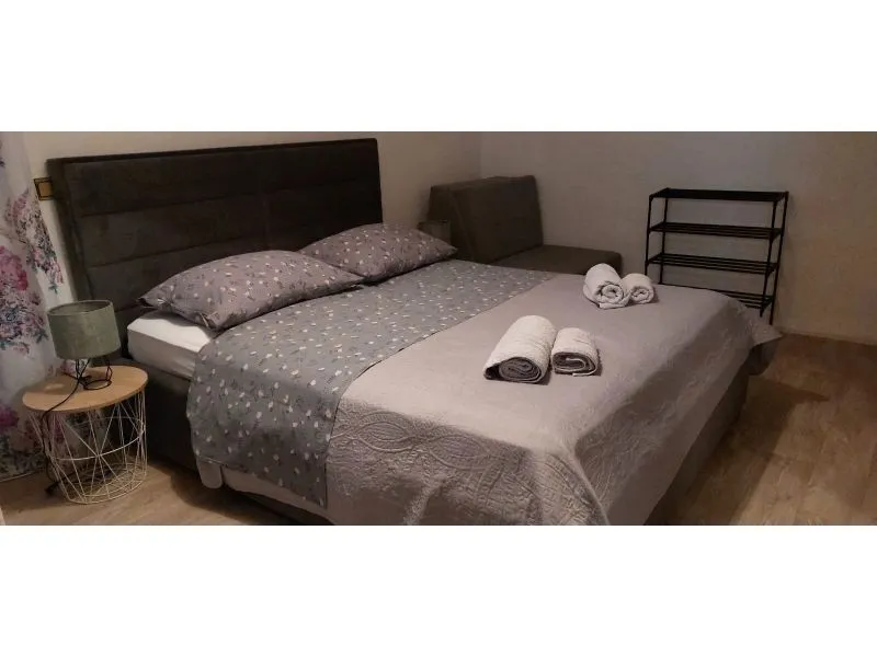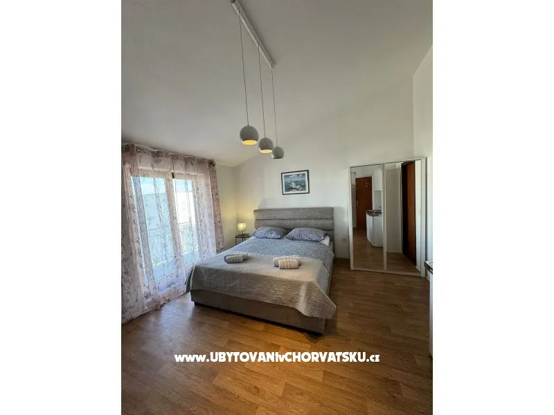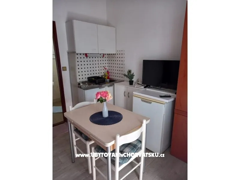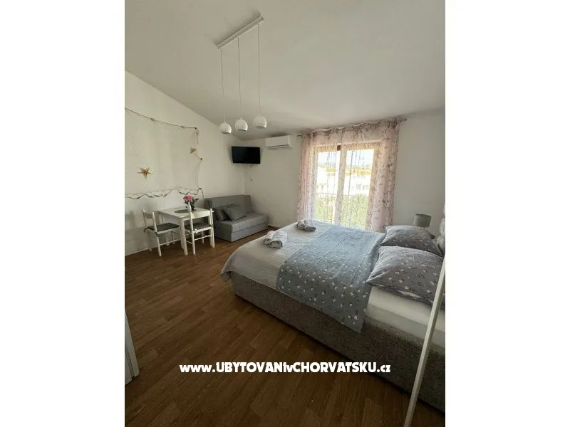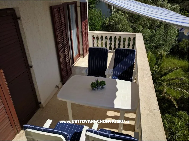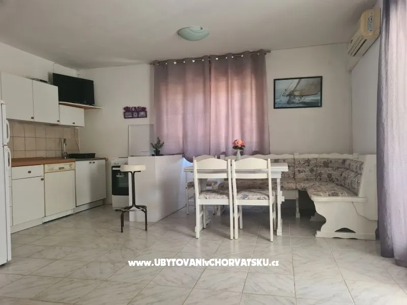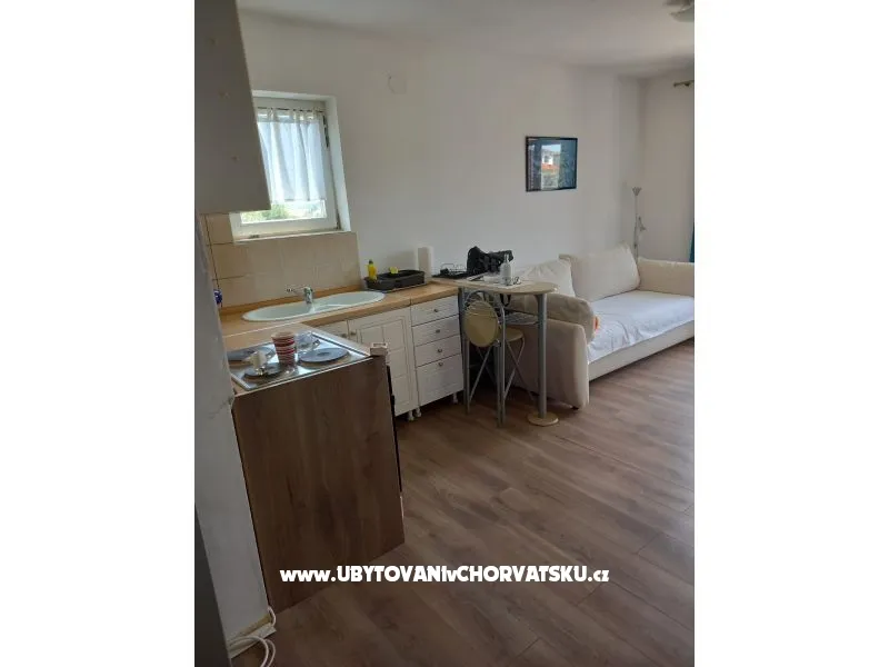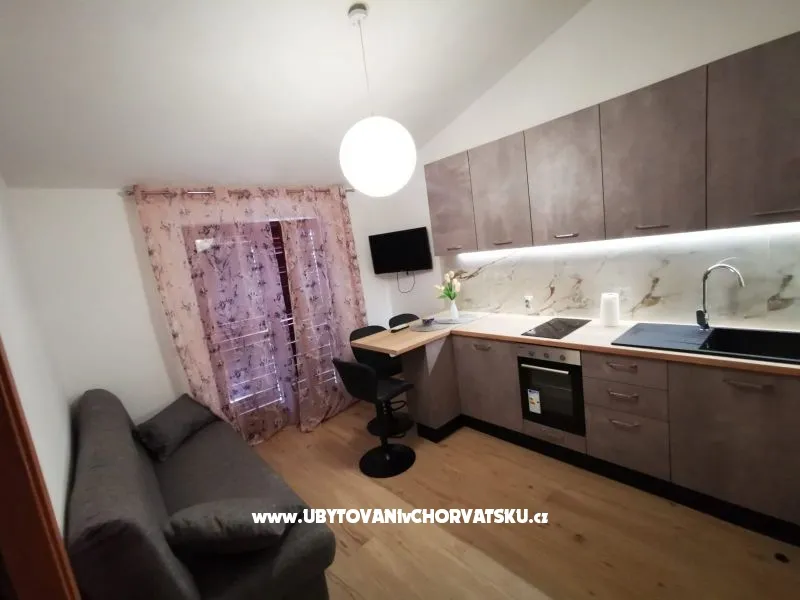 Ferienwohnung A2 befindet sich im 2. Stock. Es verfügt über ein Schlafzimmer und Küche mit Wohnzimmer und Schlafcouch, Bad mit Dusche und einen Balkon mit Blick auf den Garten und das Meer. Häusliche, warme Atmosphäre begeistern Sie alle unsere Gäste.
