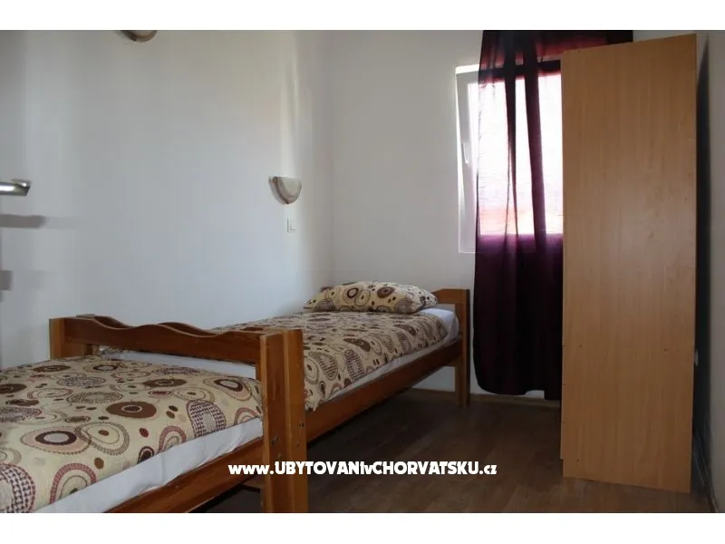 Ein Zimmer mit einem Ehebett für 2 P. und einem Balkon hinter dem Haus, ein Zimmer mit einem Bett für 1 P. und einem "click-clack" Bett für 1+1 P. und eienm Balkon vor dem Haus, Küche und Badezimmer.
