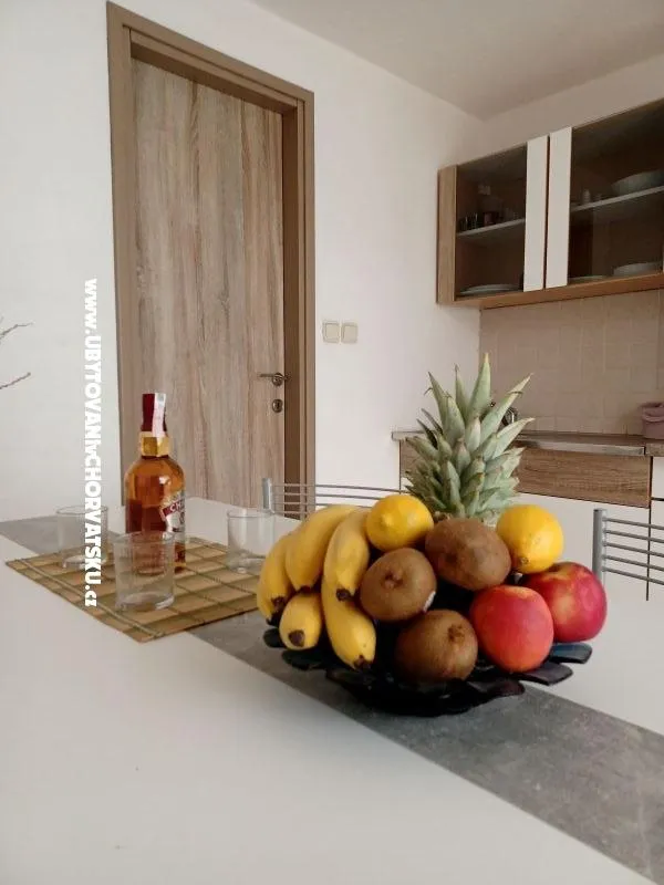 Villa Klara ist ein freistehendes Gebäude, das Platz für maximal 12 Personen bietet und komplett vermietet wird. Vom 01.05. bis 28.06. und vom 01.09.-30.09. Mögliche individuelle Wohnungsmiete. Es liegt 50 Meter vom Strand entfernt in der wunderschönen Osibova-Bucht, die kristallklares Meer bietet. Es ist ein idealer Ort für Liebhaber des Schwimmens und Tauchens sowie für diejenigen, die dem Trubel der Stadt entfliehen und einen Jahresurlaub genießen möchten. Das nächste Lebensmittelgeschäft befindet sich im zwei Kilometer entfernten Milna. Die Villa verfügt über vier Einzimmerwohnungen. Jede Wohnung verfügt über einen separaten Eingang, ein Wohnzimmer mit zusätzlichem Klappbett, ein Schlafzimmer mit Doppelbett, ein Badezimmer mit Dusche, eine Miniküche und eine Terrasse mit Meerblick. Die Apartments sind mit Sat-TV, WLAN-Internet und Klimaanlage ausgestattet. Im Erdgeschoss der Villa gibt es eine Gemeinschaftsküche und eine 20 m2 große Terrasse für geselliges Beisammensein. Innerhalb der Villa können die Gäste den wunderschön angelegten Garten genießen und entspannen, wo es einen beheizten Hydromassage-Pool, einen Whirlpool für sechs Personen, Liegestühle zum Sonnenbaden, einen Grill, Der Strand für Kinder und Nichtschwimmer ist ca. 50 Meter entfernt, der Strand für Schwimmer ist nur wenige Meter entfernt. Der Gastgeber stellt Ihnen gerne einen Liegeplatz für das Boot zur Verfügung, der hundert Meter von der Villa entfernt liegt, und führt Sie zu den Sehenswürdigkeiten der Insel Brač. Aufgrund des milden Klimas, der vielen Sonnentage und des warmen Meeres ist ein angenehmer Aufenthalt auf Brač von Anfang Mai bis Ende Oktober möglich. Parkplatz für drei Fahrzeuge vor der Villa. An- und Abreise: Check-in ab 16:00 Uhr, Check-out bis spätestens 10:00 Uhr. Anzahlung: 30 % per Banküberweisung, die restlichen 70 % per Zahlung vor Anreise oder bei Schlüsselübergabe. Stornogebühr: 0 - 60 Tage vor Anreisedatum keine Rückerstattung, 61 und mehr Tage vor Anreisedatum 90 % Rückerstattung. Haustiere sind nicht erlaubt. Partys/Veranstaltungen sind nicht gestattet.