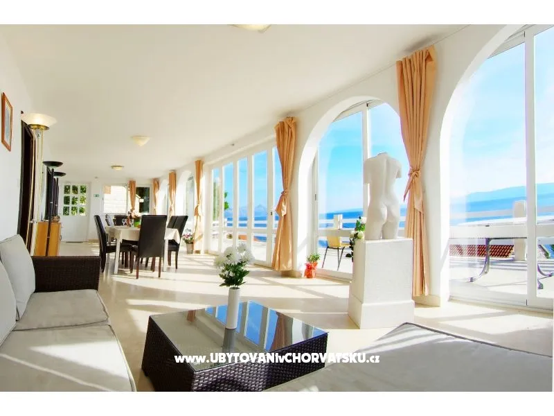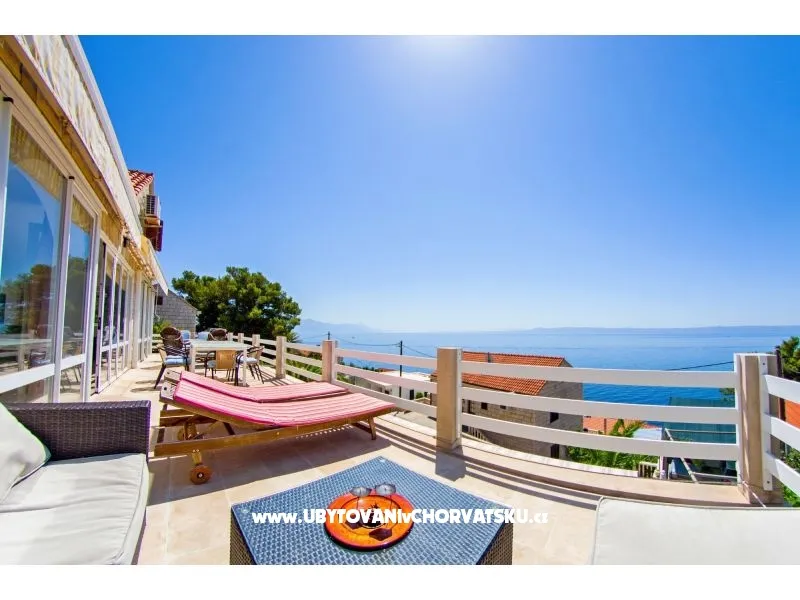 Ganzes Haus für bis zu 18 Personen, bestehend aus 5 Wohnungen, 6 Bädern, 7 Schlafzimmern, 5 Terrassen, Grillplatz, 4 Parkplätzen. Der nächste Strand ist 50 Meter entfernt. 1. Etage, 2. Etage und Dachgeschoss. Waschmaschine auf Anfrage erhältlich. Ideal für eine große Gruppe von Freunden und Familien. Eine Kaution in Höhe von € 500 ist beim Check-in in bar zu hinterlegen. **** Nachdem die Kaution beim Check-in bezahlt wurde, erstatten wir beim Check-out immer die gesamte Kaution. Die Endreinigung ist im Preis inbegriffen. Natürlich gibt es Zeiten, in denen die Leute kein Privateigentum verstehen oder respektieren und wenn wir nach dem Abzug der Gäste viel mehr Energie, Zeit, Menschen und Geld für die Reinigung dieses Raums aufbringen müssen. Aus diesem Grund geben wir beim Check-in eine Reinigungspreisliste an. Reinigungsflecken an den Wänden, große Flecken auf Balkonen, Terrassen (sie bestehen aus Stein, der alles absorbiert) und Böden, zerbrochene Stühle (oder Neukauf), abgerissene Gegenstände innerhalb von Eigentum und Garten (und Fixieren oder Neuanlegen) nicht mit kostenloser Endreinigung abgedeckt. Diese zusätzliche Reinigung kostet uns zusätzliche Zeit, Energie und am Ende wird Geld und Geld für die Reinigung hierfür von der Kaution von der Reinigungspreisliste abgezogen. Ich hoffe, dass dies zu Ihnen passt und dass dies kein Problem für die Buchung dieses schönen Hotels sein wird, das ideal für eine große Gruppe von Freunden oder Familientreffen ist, da wir fast immer Gäste hatten, die man sich wünscht. (: Danke für dein Verständnis. **** Das Haus besteht aus 5 Wohnungen: zwei im 1. Stock, eine große im 2. Stock und zwei im Dachgeschoss. **** Dachgeschoss (Platz für 9 Personen): Apartment 1: Küche, Wohn- / Esszimmer mit Sofa für eine Person, Schlafzimmer mit einem Kingsize-Bett und einem Einzelbett, Badezimmer und Terrasse mit herrlicher Aussicht. 60 m2. Studio-Apartment: Küche, Wohn- / Esszimmer mit Sofa für eine Person und Kingsize-Bett, Badezimmer. Schöne Aussicht aus dem Fenster im Wohnzimmer. 50 m2. Zusätzliches Kingsize-Bett ist im Flur im Dachgeschoss verfügbar. **** 2. Etage (Platz für 10 Personen): Eine große Wohnung: Wohnzimmer, Esszimmer, Küche, drei Schlafzimmer, zweites großes Esszimmer mit langem Balkon und herrlichem Meerblick. Drei weitere Unterkünfte stehen auf zwei großen Sofas zur Verfügung. 150 m2. **** 1. Etage (Platz für 8 Personen): Wohnung 1: Küche mit Esszimmer, Wohnzimmer mit Sofa für zwei Personen, Schlafzimmer mit einem Kingsize-Bett und einem zwei Einzelbetten, Badezimmer und Terrasse. 70 m2 Apartment 2: Küche mit kleinem Esszimmer, Badezimmer, Schlafzimmer mit Kingsize-Bett und Terrasse. 50 m2