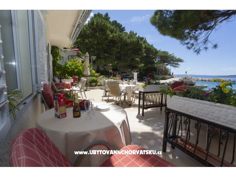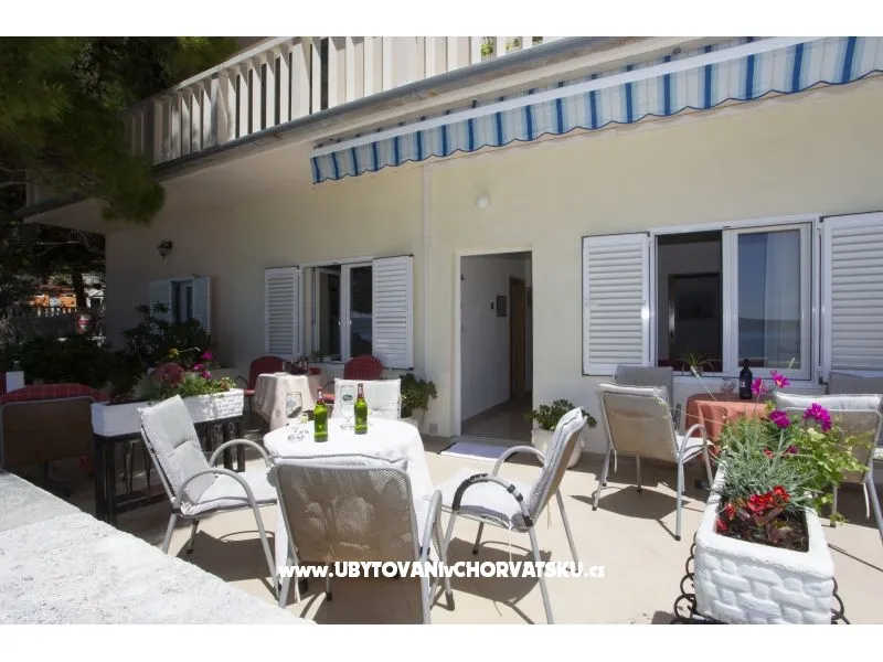 Das Hotel liegt in prizemlju.U Zimmer mit einem Doppelbett , das Wohnzimmer ist das Bett. In der großen Gemeinschaftsterrasse , mit Blick auf das Meer, jede Wohnung hat einen eigenen Raum mit einem Stuhl zur Verfügung gestellt