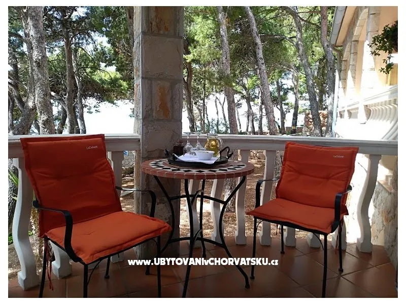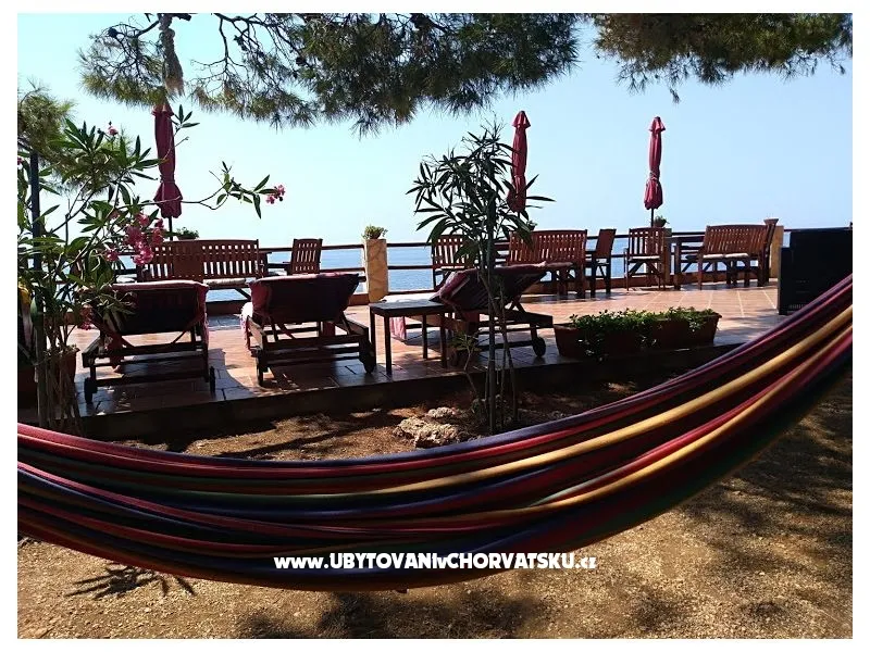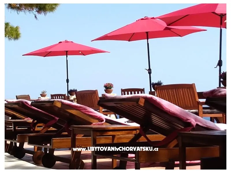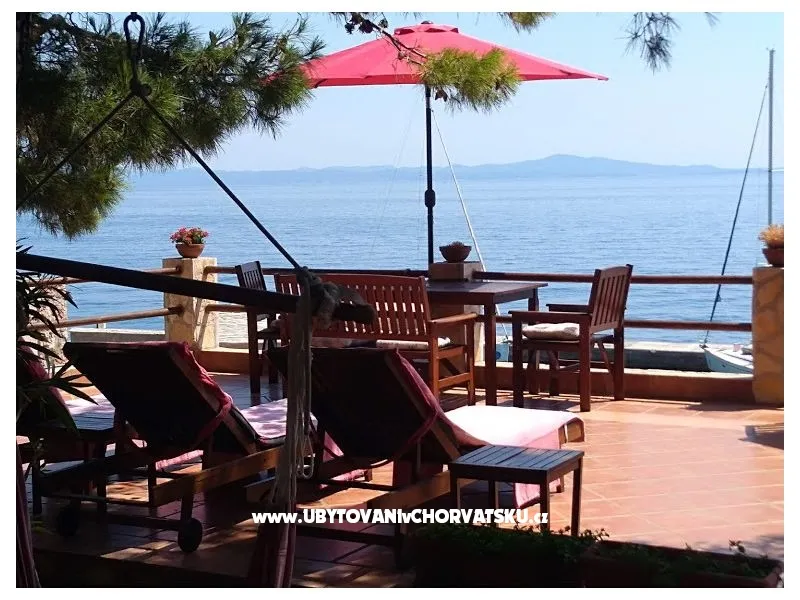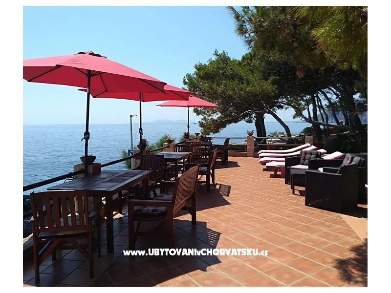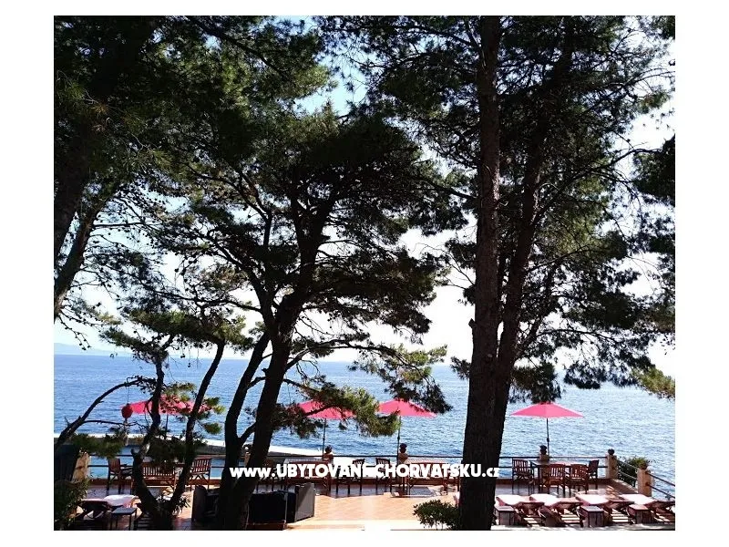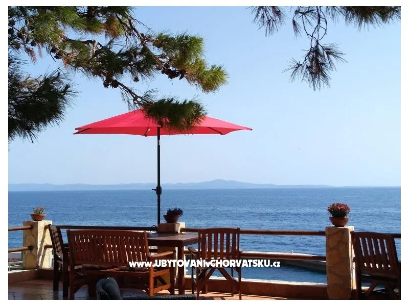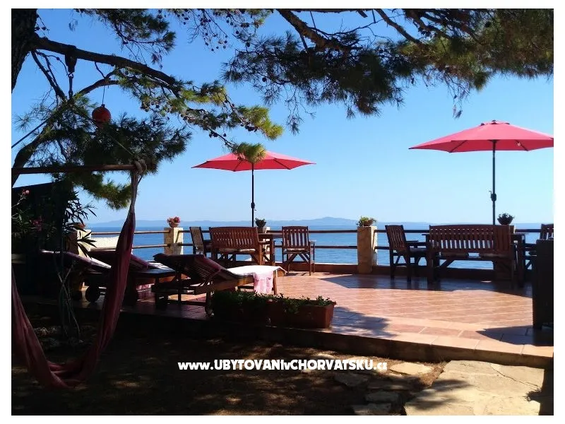 Direkt am Meer gelegen (ca 25m bis zum Meer) und nur 100 Meter von der romantischen Liebe rock ! Parzelle von ca 800 qm, mit einer Neigung von ca 25° Asphaltweg bis zur Villa, wo der Weg endet. Freistehendes Objekt im Pinienwald Jedes Zimmer verfügt über einen Parkplatz in der Garage Das Haus ist mit allem modernen Komfort inklusive GSM ausgestattet. Gleich unterhalb der Villa liegt gibt es einen Anlegeplatz für kleinere Boote für Volleyball, Tischtennis, Badmington u.ä. Meeresblick aus jedem Zimmer Wohnzimmer (40 qm) mit Ausgang auf eine halbrunde Terrasse und den Garten mit Meeresblick Im Garten steht ein Grill frei zur Verfügung Kostenlose Benutzung von Schaukel, Hängematten, Liegestühlen, Schach und Kartenspielen Alle Zimmer verfüngen über eigenes Bad, Loggia, Terrasse oder Balkon mit Meeresblick Weiters verfügt jedes Zimmer über einen Kühlschrank Kostenlose Safebenutzung GEBUHRENPFLICHTIGE ANGEBOTE Benutzung der Waschmaschine Gemeinsame Küchebennutzung Strände 20 m unterhalb der Villa, Fliesen Strand !!! Nur 100 Meter von dem Haus ist ein beliebten Stein - Paare in der Liebe: "Veli kamik" und weiters einen neu angelegten Kiesstrand Romantischer Weg bis zum einer herrlichen Bucht mit Kiesstrand (ca 400 m entfernt) Kleine, alte Marina, erfüllt mit neuem Leben mit Bergsteigers (und) FKK Bucht Piscena ca 3500 m und Bucht mit Kisstrand ca 2700 m entfernt (Lutschishtsche) Im Pinienwald unterhalb der Villa gibt es Spielmöglichkeiten