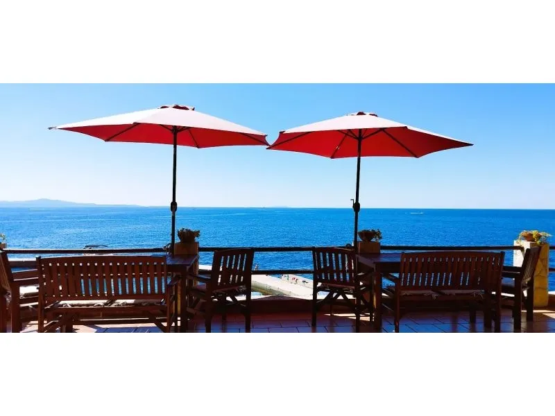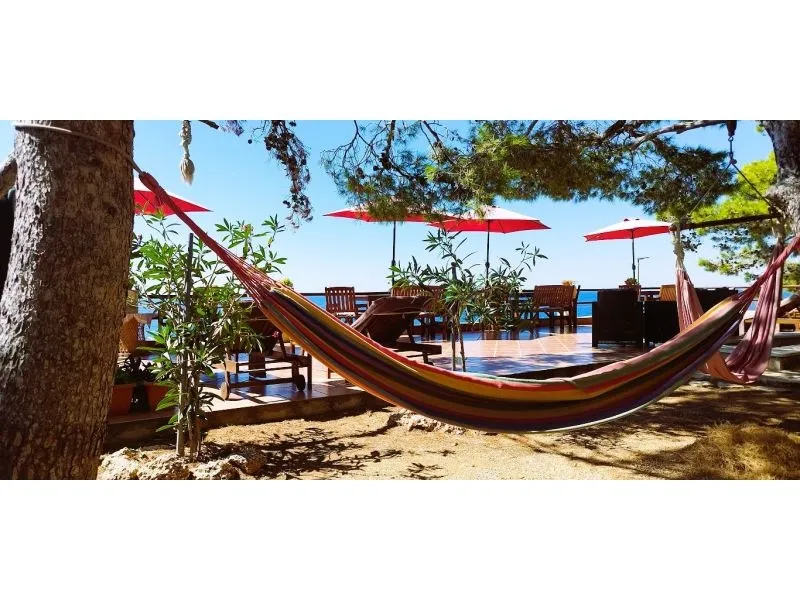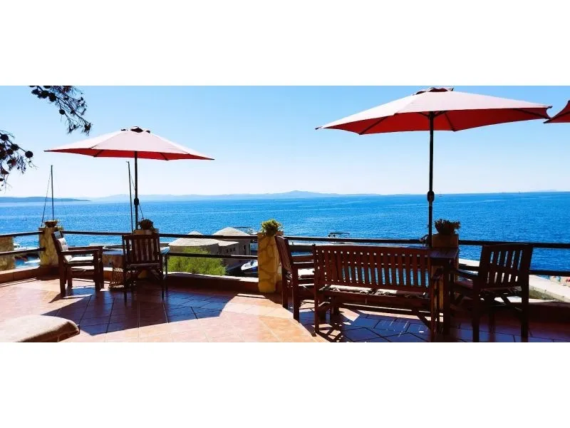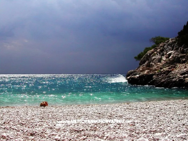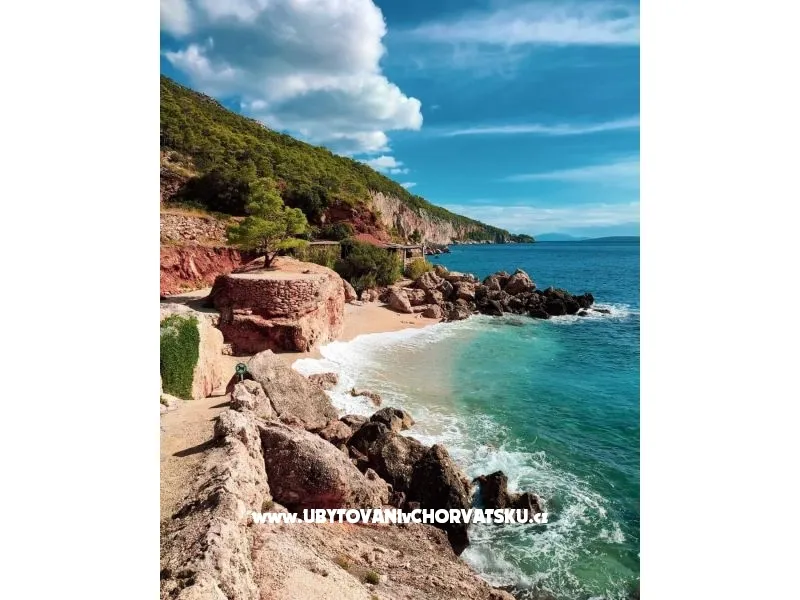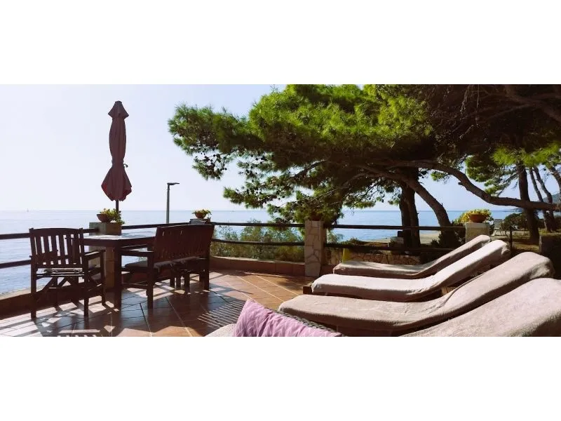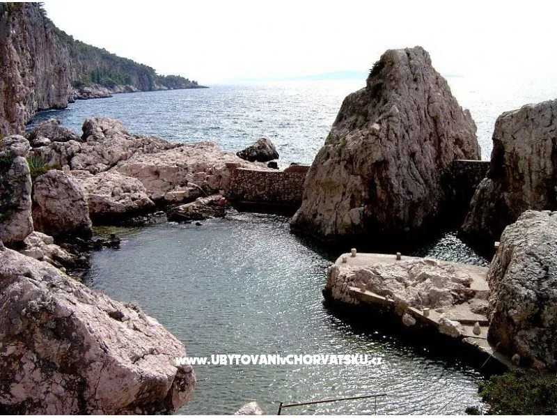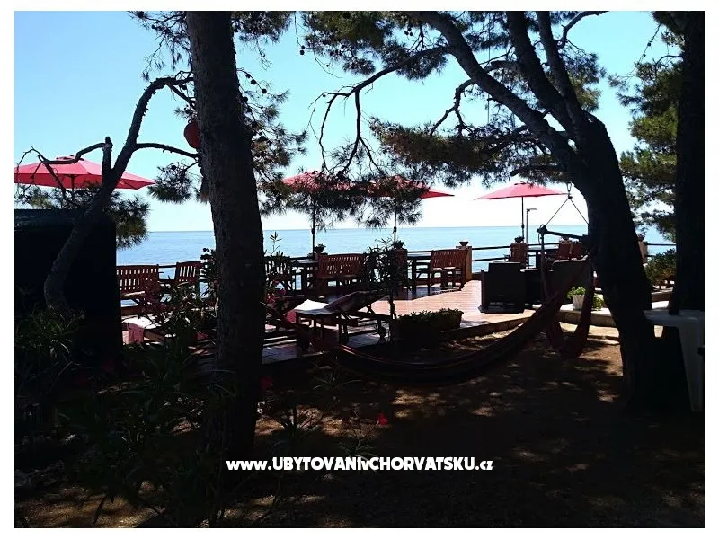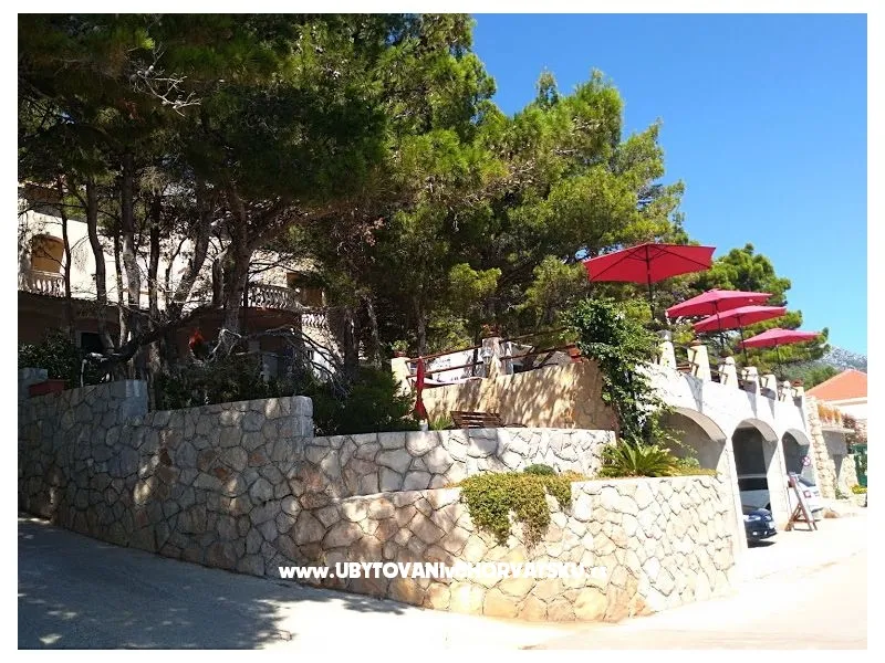Direkt am Meer gelegen (ca 25m bis zum Meer) und nur 100 Meter von der romantischen Liebe rock ! Parzelle von ca 800 qm, mit einer Neigung von ca 25° Asphaltweg bis zur Villa, wo der Weg endet. Freistehendes Objekt im Pinienwald Jedes Zimmer verfügt über einen Parkplatz in der Garage Das Haus ist mit allem modernen Komfort inklusive GSM ausgestattet. Gleich unterhalb der Villa liegt gibt es einen Anlegeplatz für kleinere Boote für Volleyball, Tischtennis, Badmington u.ä. Meeresblick aus jedem Zimmer Wohnzimmer (40 qm) mit Ausgang auf eine halbrunde Terrasse und den Garten mit Meeresblick Im Garten steht ein Grill frei zur Verfügung Kostenlose Benutzung von Schaukel, Hängematten, Liegestühlen, Schach und Kartenspielen Alle Zimmer verfüngen über eigenes Bad, Loggia, Terrasse oder Balkon mit Meeresblick Weiters verfügt jedes Zimmer über einen Kühlschrank Kostenlose Safebenutzung GEBUHRENPFLICHTIGE ANGEBOTE Benutzung der Waschmaschine Gemeinsame Küchebennutzung Strände 20 m unterhalb der Villa, Fliesen Strand !!! Nur 100 Meter von dem Haus ist ein beliebten Stein - Paare in der Liebe: "Veli kamik" und weiters einen neu angelegten Kiesstrand Romantischer Weg bis zum einer herrlichen Bucht mit Kiesstrand (ca 400 m entfernt) Kleine, alte Marina, erfüllt mit neuem Leben mit Bergsteigers (und) FKK Bucht Piscena ca 3500 m und Bucht mit Kisstrand ca 2700 m entfernt (Lutschishtsche) Im Pinienwald unterhalb der Villa gibt es Spielmöglichkeiten