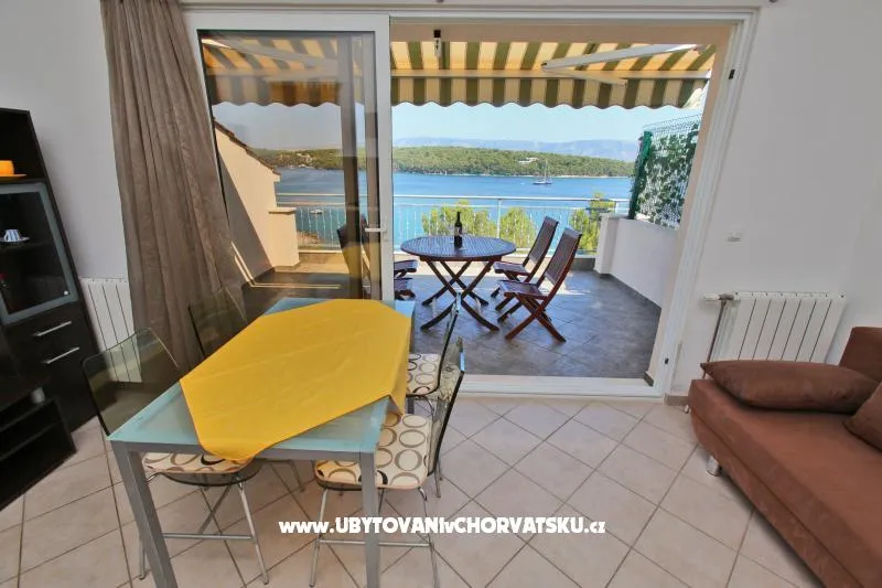 Die Villa Mer ist in der Stadt Jelsa - Insel Hvar, in einer ruhigen Gegend, umgeben von Olivenhainen und Pinienwäldern. Jede Wohnung hat einen direkten Blick auf das Meer. Das Haus liegt direkt in erster Linie am Meer.
