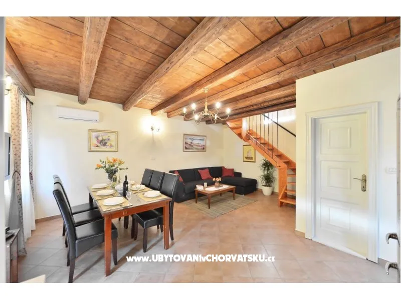 Haus in Omis, nur dreißig Meter von der Blauen Flagge ausgezeichneten Strand in einer ruhigen Gegend, abseits von Hektik und Straßen. Die Wohnung befindet sich in einem modernen dekoriert - rustikalen Stil und ist voll ausgestattet. Es besteht aus einem Erdgeschoss mit Küche, Ess-und Wohnzimmer und einem großen Badezimmer mit Waschmaschine, und im ersten Stock sind drei Schlafzimmer und ein zweites Bad. Das Haus hat einen Garten mit Grill und ein Tisch für zehn Personen. Die Kapazität ist 6 +3 Personen, denn das Sofa mit einer Matratze im Erdgeschoss erstreckt sich über 2 +1 Personen. Die Küche ist mit Geräten und Utensilien mit Geschirrspüler, Erdgeschoss und ersten Stock ausgestattet sind klimatisiert und verfügen über einen Safe, Internetanschluss, SAT-TV. Matratzen sind die besten - Orthopädie, Bettwäsche ist ein Unikat - von Hand gebunden. Parken gesichert zwanzig Meter vom Haus entfernt. Alle (Kurtaxe, Klimaanlage, Parkplatz ..) ist im Preis enthalten.