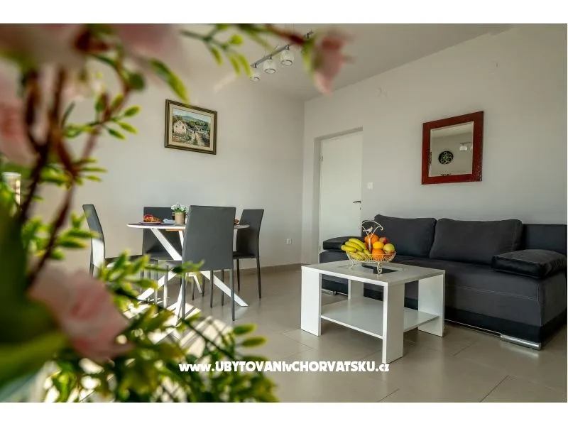 Die Apartments Sonata bestehen aus 4 Apartments. Das Apartment OPERA verfügt über 3 Schlafzimmer, 3 Badezimmer, eine große Küche / Wohnzimmer und eine große Terrasse von 40 m2 mit Meerblick. Apartment SONATA verfügt über 3 Schlafzimmer, 3 Badezimmer, Küche / Wohnzimmer, Balkon und Terrasse mit Meerblick. Apartment RONDO verfügt über 2 Schlafzimmer und 2 Bäder, Küche, Wohnzimmer, Terrasse und Balkon mit Meerblick. Apartment ARIA hat 2 Schlafzimmer und 2 Badezimmer, Wohnzimmer und Küche und 2 kleinere Balkone mit Meerblick. Die Apartments sind groß und bieten Platz für 2 bis 3 Familien. Zu jeder Wohnung gehören mindestens 2 Parkplätze. Der Preis beinhaltet WIFI, Parkplatz und Klimaanlage. Das Haus liegt in einem ruhigen Vorort von Omis, 4 km vom Zentrum entfernt. Es gibt Supermärkte und Restaurants in der Nähe. (5 Gehminuten).