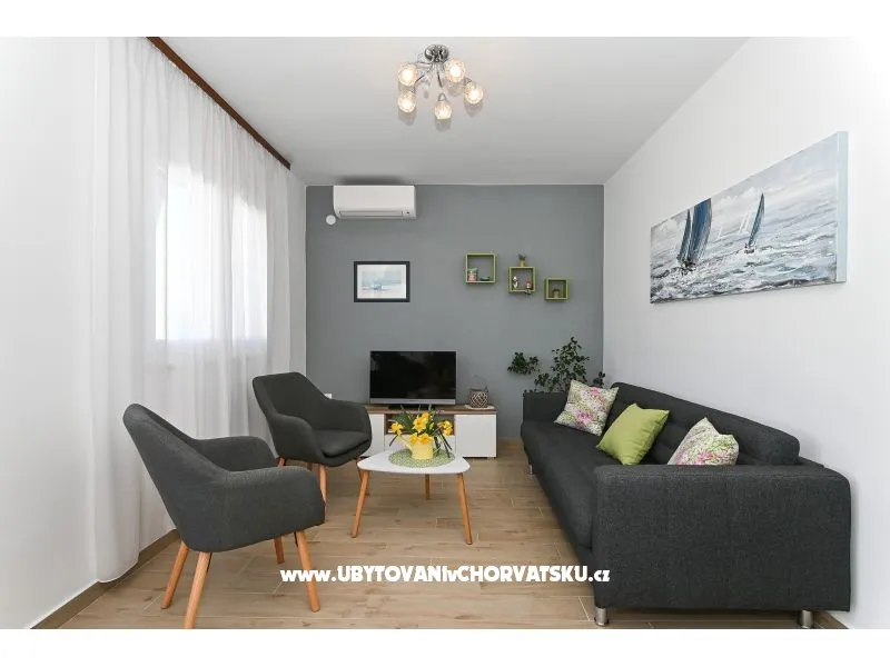 60m vom Strand, erster Stock, Meerblick, Balkon, 2 Schlafzimmer, Klimaanlage, SAT-TV, Waschmaschine (Eigentümer), kostenlos, Wi-Fi, Außengrill, privater Parkplatz