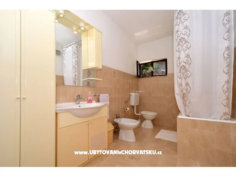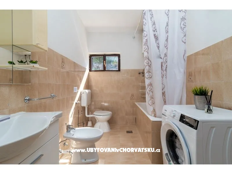 150 m vom Meer, erster Stock, Terrasse 15 + 12 m2, 3 Schlafzimmer, Internet, Klimaanlage, Waschmaschine (vom Vermieter), Grill im Freien, Parkplatz, Bettwäsche, Handtücher