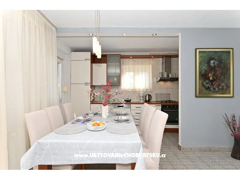 Sie zahlen pro Reservierung 35% Anzahlung + Reservierungsgebühr. Der Rest wird bei der Ankunft in der Einrichtung bezahlt. In der Hauptsaison beträgt der Mindestaufenthalt 5 Nächte. Die Apartments Ria befinden sich 70 m vom Strand entfernt (Art des Strandes: Beton, Kies). Beide Wohnungen verfügen über eine eigene Terrasse mit Meerblick. Babybett-auf Anfrage. Außenanlagen: Außengrill, Zufahrt zum Objekt mit dem Auto, Privatparkplatz, Garage, Garten Anmerkungen: Ein Parkplatz pro Wohnung