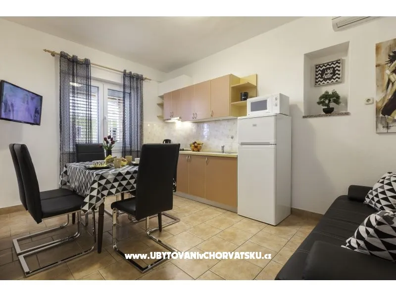 Super pensjonat z apartamentami z widokiem na morze. Ładnie i gustownie urządzone pokoje, dobrze wyposażone i przede wszystkim nowe. apartamenty są stosunkowo duże. W stosunku jakość/cena zdecydowanie jedna z najlepszych opcji w Tucepi. Warto dopłacić za apartamenty 4/5os na ostatnim piętrze z dużymi tarasami i zniewalającym widokiem na Adriatyk. Dojście na plażę zajmuje 5 minut spokojnym spacerem, a po drodze mija się sklepy i restauracje.