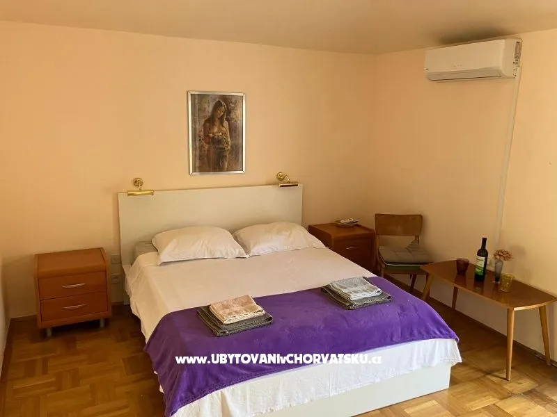 Wohnung befindet sich in einem separaten Haus hinter der Villa Danica. Es besteht aus 1 großem Zimmer, das durch eine Trennwand in der Mitte des Zimmers in 2 Teile geteilt ist, 4+1 Betten, 2 Badezimmern (1 internes und 1 externes), Küche und Terrasse