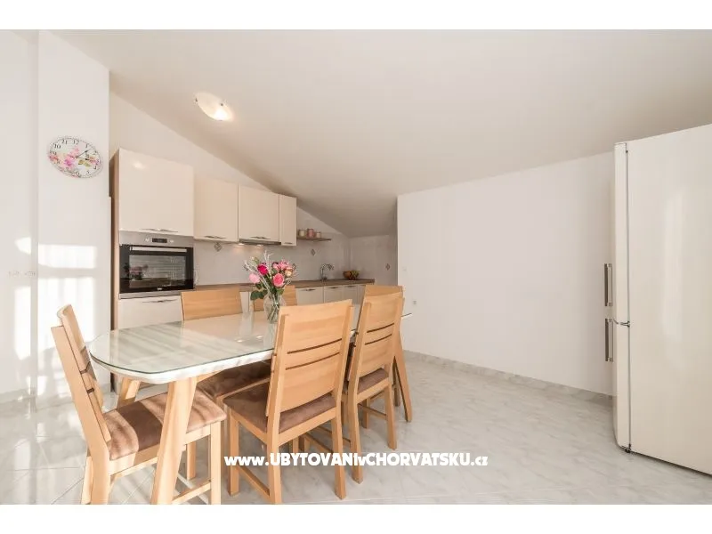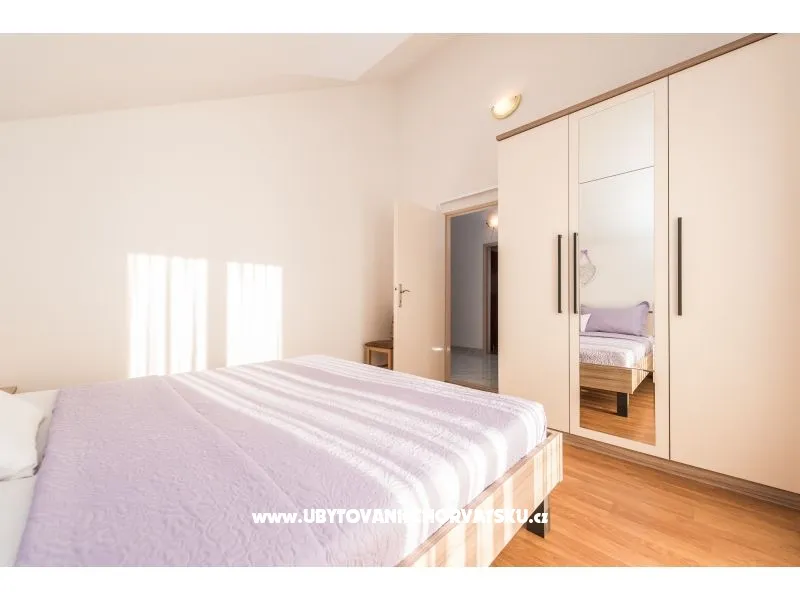 Das klimatisierte Apartment im zweiten Stock des Einfamilienhaus mit gemeinsamem Eingang.WIFI, 3 Schlafzimmer, eine voll ausgestattete Küche mit Geschirrspüler, Wohnzimmer mit zwei Betten, Bad, Gäste-WC, 3 Terrassen 2 davon mit Meerblick. Die Wohnung ist von einem großen Innenhof, ideal für Kinder umgeben, mit Garten und Gartendusche und einem großen Parkplatz.