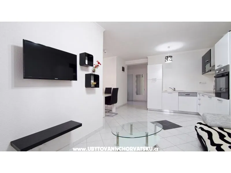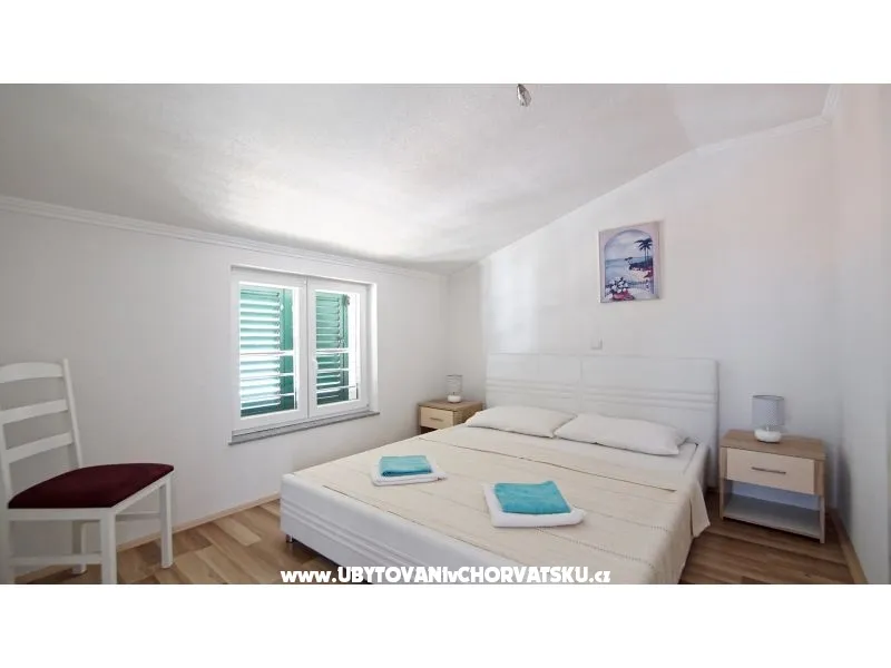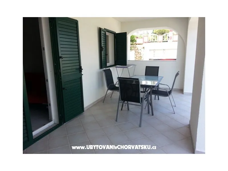 Apartments 5 & 7 (2 + 2): Ein Schlafzimmer mit Doppelbett , Küche und Wohnzimmer, wo der Klick-Klack-Bett, das zwei Personen schläft. Es gibt auch ein Badezimmer mit Dusche und eine Terrasse mit Blick