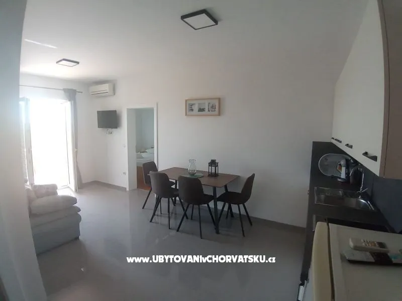 Velmi pěkné ubytování, vstřícný a ochotný majitel. Byli jsme tu již podruhé a chystáme se znovu. Blízko pěkný sjezd do vody pro spuštění člunu. Moře je za dveřmi, dno bez ježků, místy bahýnko, jinak štěrk. Všude kolem spousta pěkných pláží, ideální mít lodičku. Možno i dojít nebo dojet autem. Nám se tu moc líbí.