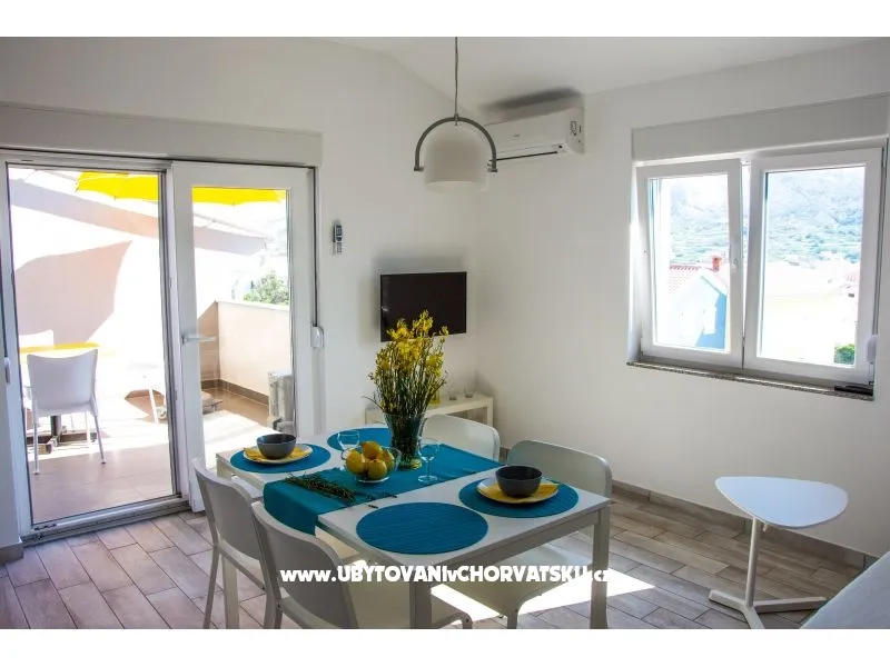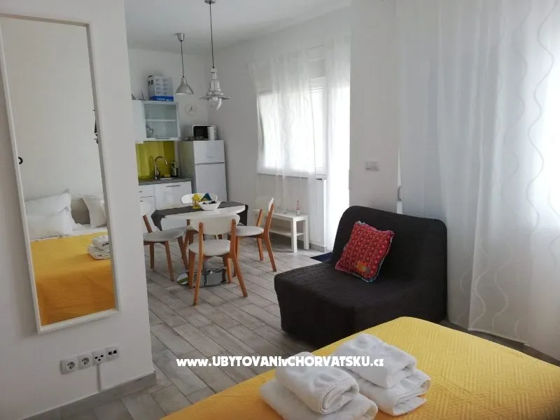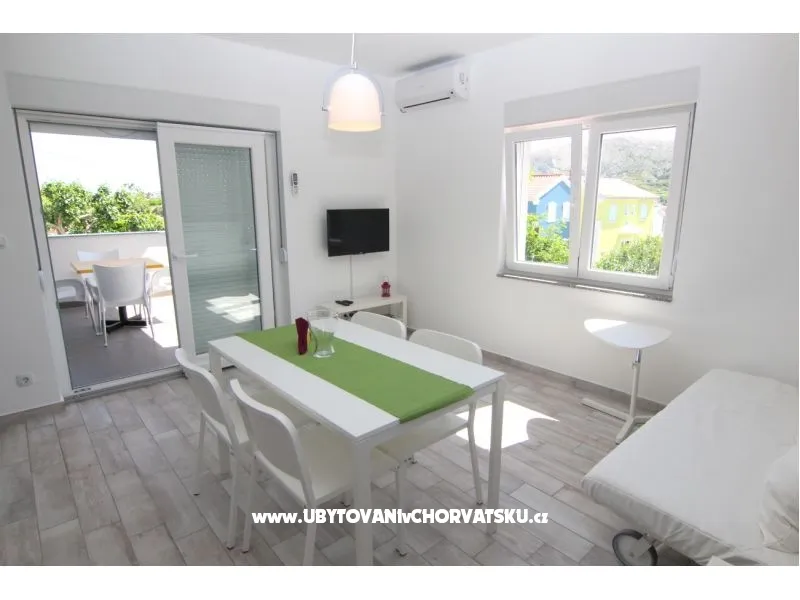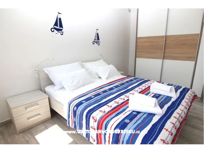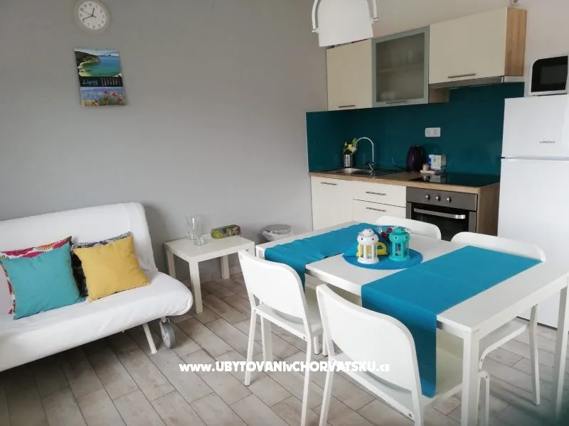 Modernes, stilvoll eingerichtetes Apartment für 2–4 Personen in ruhiger Umgebung am Meer. Das Apartment verfügt über zwei Schlafzimmer, eine ausgestattete Küche, ein Badezimmer, einen Balkon, WLAN, Klimaanlage und Sat-TV.