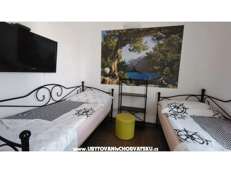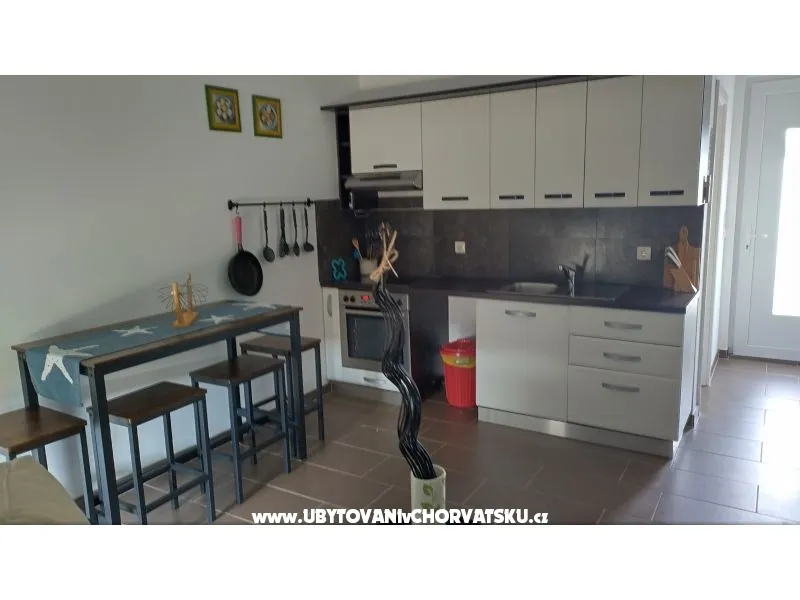 Das Apartmenthaus wurde 2013 gebaut. Es ist isoliert, die Fenster verfügen über elektrische Jalousien und Moskitonetze. Die Erwärmung des Wassers erfolgt über eine Solaranlage, die durch eine Elektroheizung ergänzt wird, falls die Sonne nicht scheint. Das Haus verfügt über einen eigenen Parkplatz für 4 Autos. Der Parkplatz ist so gelegen, dass Ihr Auto den ganzen Tag vor der Sonne geschützt ist. Auf dem zum Haus gehörenden Grundstück befindet sich ein großer Grill, der genutzt werden kann. Es gibt einen Garten mit einer Steinterrasse und einem Sitzbereich zum Entspannen. Die Apartments A1, A2 und A3 befinden sich im ersten Stock und das größte Apartment A0 befindet sich im Erdgeschoss. Jedes Apartment verfügt über eine eigene Terrasse mit Sitzmöglichkeit. Für jedes Apartment gibt es einen Parkplatz. Alle Apartments im ersten Stock sind mit einer Klimaanlage ausgestattet. Das Apartment im Erdgeschoss verfügt zwei Klimaanlagen und zwei TV. Im jeden Apartment im ersten Stock gibt es einen Fernseher mit tschechischen, kroatischen und deutschen Programmen. Der Fernseher kann über HDMI oder USB angeschlossen werden. Das Apartment A0 (im Erdgeschoss) verfügt auch eine Waschmaschine, eine Spülmaschine und eine Kaffeemaschine. Ebenso sind in diesem Apartment zwei WCs. Die Küche ist mit einem Glaskeramik-kochfeld, einer Ofen, einer Mikrowelle und einem Kühlschrank ausgestattet. Natürlich sind Teller, Gläser, Töpfe, Besteck selbstverständlich. WiFi ist gratis. Die Endreinigungsgebühr in Höhe von 60 € ist nicht im Preis inbegriffen. Reservierungen sind in der Hochsaison nur von Samstag bis Samstag möglich. Wir sprechen Deutsch +421907822563