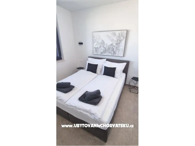 Appartements direkt am Strand auf der Insel Vir. Im Erdgeschoss befindet sich ein 4 Personen Appartement, Im ersten und zweiten Stock 6Personen Appartements.Kostenlos steht unseren Gästen zu Verfügung