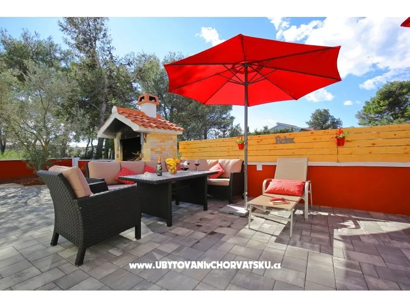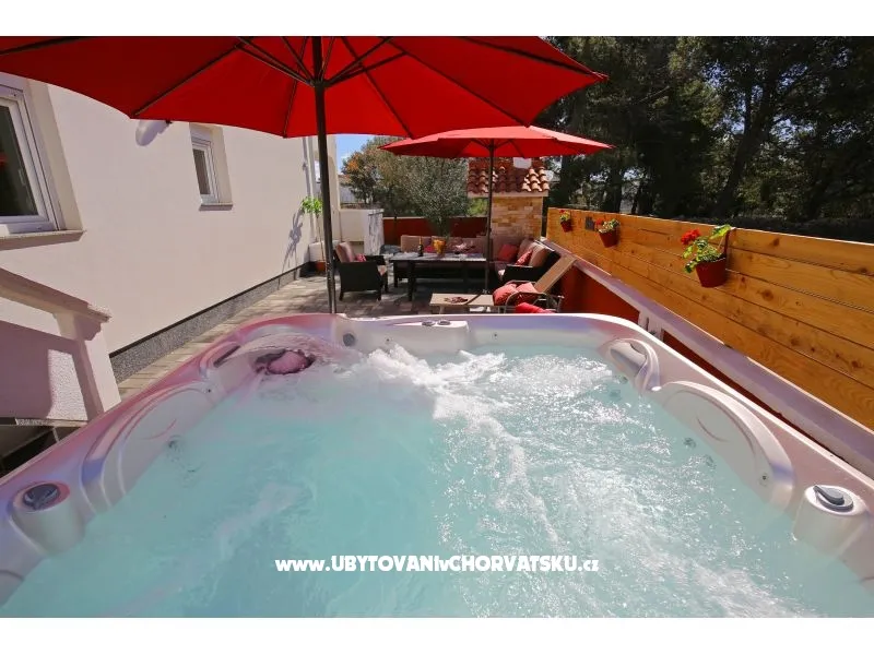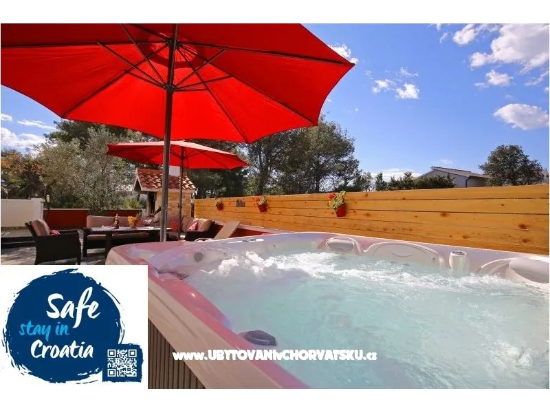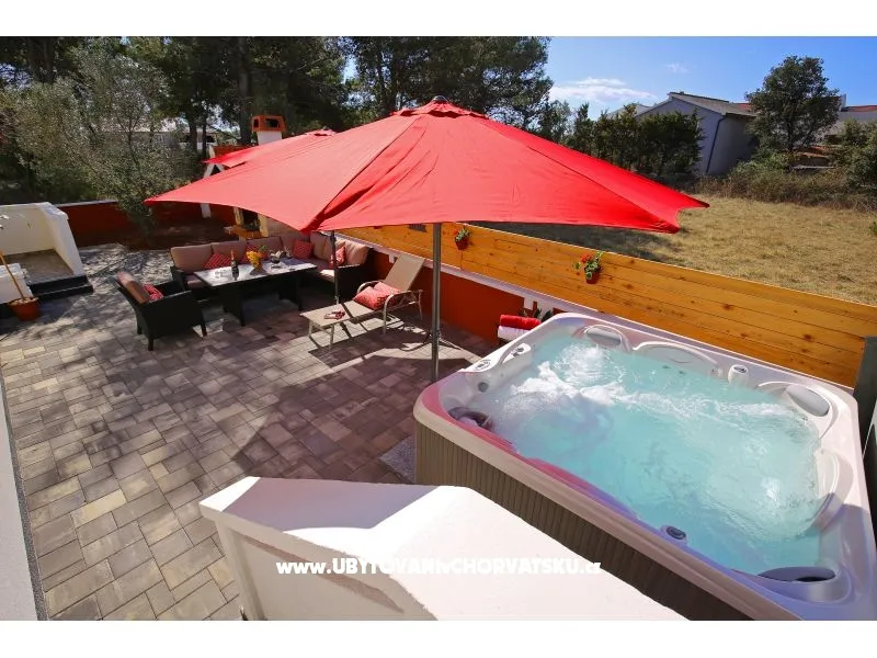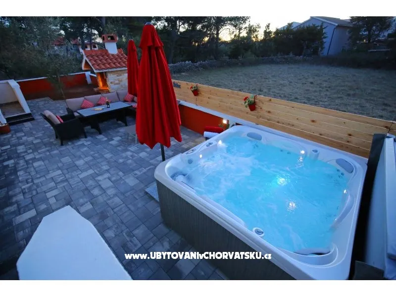 Das Haus mit einem großen Garten mit Whirpool (Jacuzzi Bad) für 6 Personen, große Gartensofa und großen Grill. Ideal für den Sommer sozialisieren. Im Haus gibt es zwei Wohnungen. Jede Wohnung hat eine eigene Terrasse, Parkplatz, kostenloses Wi-Fi, Küche, Bad, Schlafzimmer. Es ist nur 10 Minuten zu Fuß entlang des Meeres vom Zentrum von Vir (Restaurants, Bars, Unterhaltung für Kinder und Erwachsene). Die...